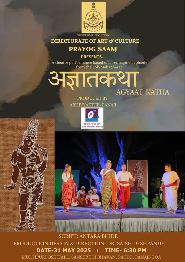 Agyat Katha aims to honor Goan performing traditions and has been designed incorporating the structure of the Katha Gaayan (story recitation forms) , along with few identifiable conventions of Indian theatre and dance forms. Agyat Katha reflects a reimagined episode from the Lok-Mahabharat while embracing the collective nature of the storytelling tradition to give it a contemporary resonance.